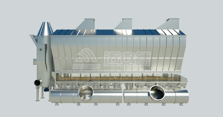 迈安德流化床由预干燥塔和卧式流化床两段式结构集成,专为处理高水分、高黏度的发酵物料而设计。该设备采用单向物料流动模式,无需物料循环,在实现高效、均匀脱水的同时,最大程度保持物料活性及产品品质稳定性。